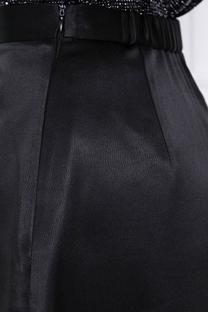 Юбка А-образного силуэта из плотного шелка,с притачным поясом и застежкой молния в боковом шве.Пояс юбки по спинке частично собран на резину.