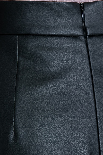 * Юбка трапецевидного силуэта из эко кожи с притачным поясом и застежка молния по спинке.
