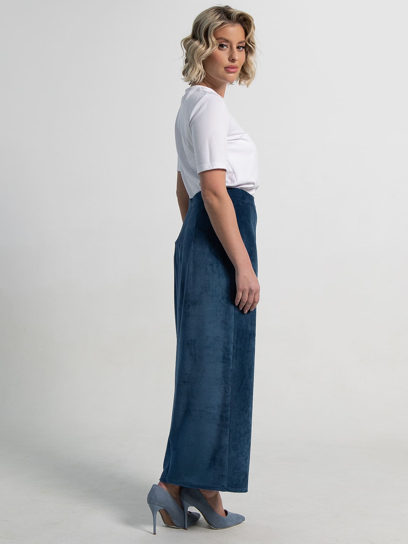 Добавьте в свой гардероб элегантность с этой вельветовой юбкой с разрезом спереди. Красивый джинсовый оттенок и текстура вельвета делают эту модель идеальным выбором для создания модных и актуальных образов в любое время года. Сочетайте её с уютными свитерами, изысканными блузками или простой футболкой, чтобы создать стильный и расслабленный образ.