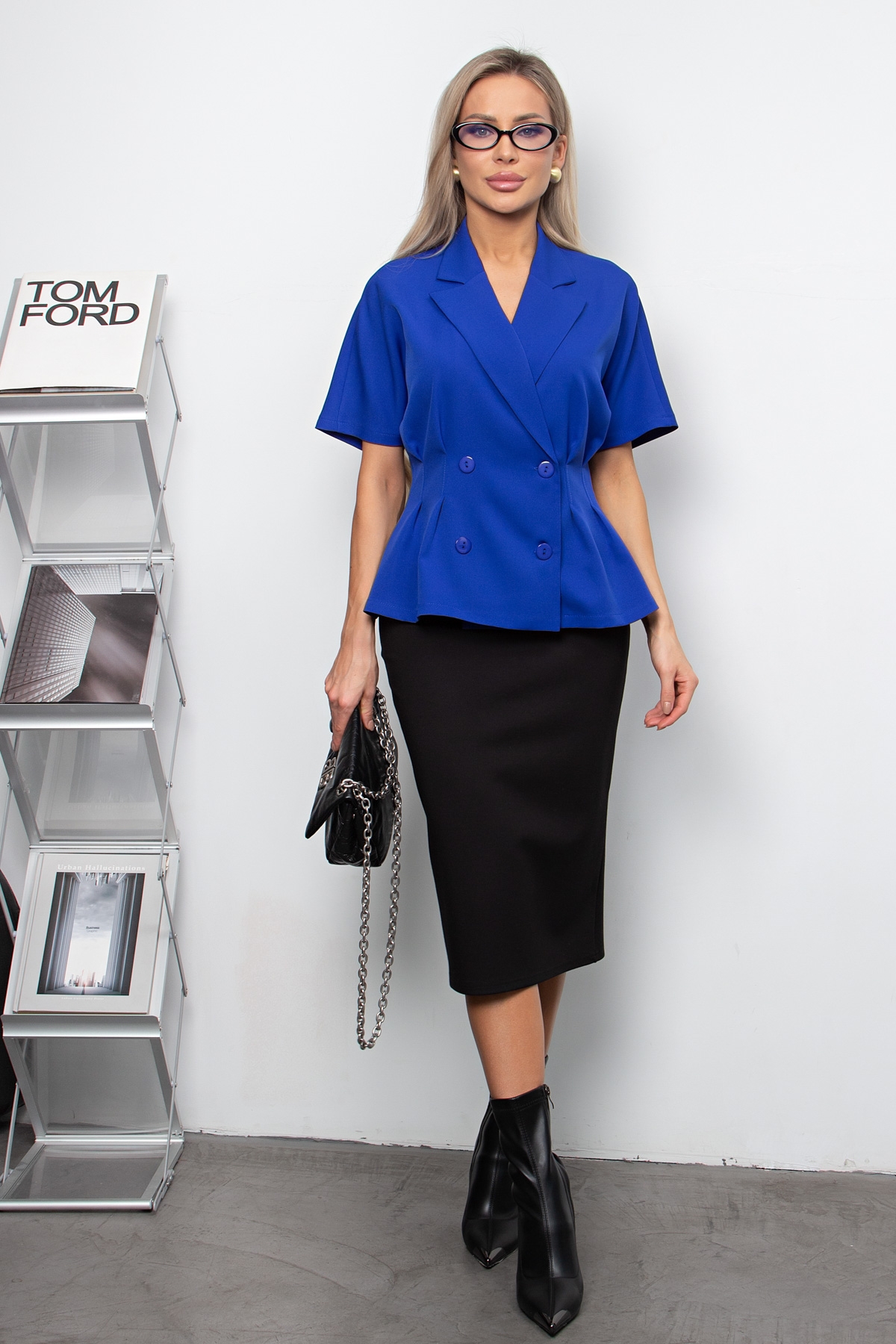 Офисная юбка-карандаш из трикотажного полотна. Верх на широкой резинке, обеспечивающей комфортную посадку на талии. В среднем шве спинки расположена потайная застежка на молнию. Модель без подклада. Низ ровный, сзади шлица.