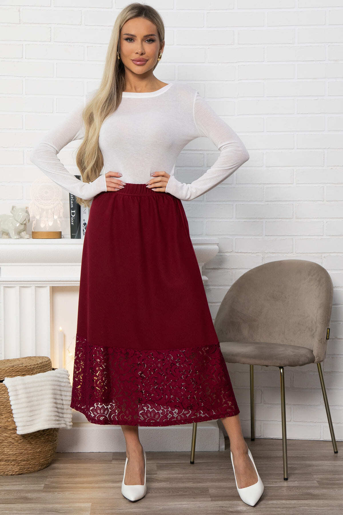 Юбка миди А-силуэта из трикотажа с кружевом станет изюминкой вашего гардероба. Пояс на резинке обеспечивает идеальную посадку, а отделка кружевом добавляет романтичности и легкости образу. Без карманов и застежек, она дарит свободу движений и комфорт в носке. Качественный трикотаж гарантирует долговечность и стильный вид, что делает эту юбку идеальным выбором для повседневных и нарядных образов. Сочетайте с любимыми топами и обувью, чтобы создать уникальный стиль, который подчеркнет вашу индивидуальность.