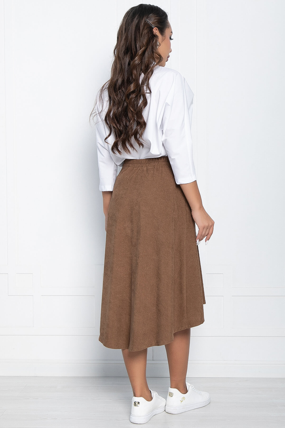 Вельветовая юбка миди это то, что подчеркнет вашу фигуру и добавит стильного шарма вашему образу! Благодаря своему трендовому силуэту и трапециевидной форме, она станет идеальным вариантом для деловых встреч, вечеринок или прогулок по городу.