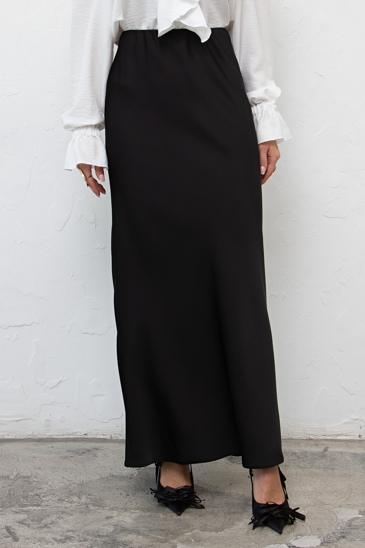 Женственная макси юбка. Талия на резинке обеспечит комфортное прилегание по талии. Модель без подкладки. Низ ровный, без разрезов.