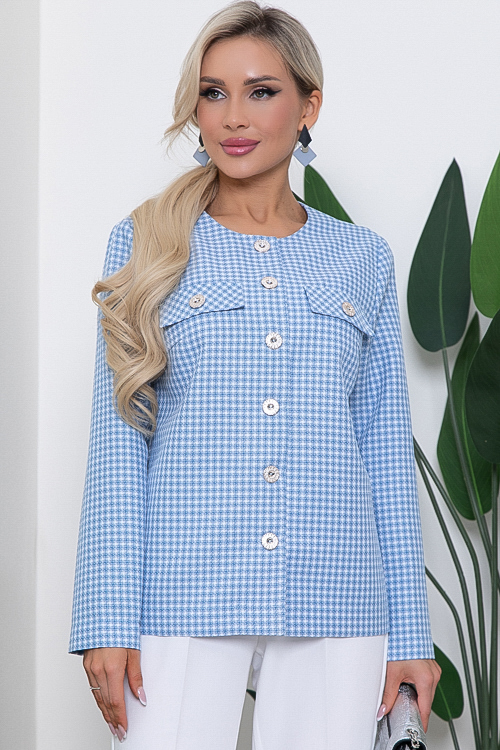 Жакет из костюмного твида в стиле шанель.Центральная застежка на пуговицы.