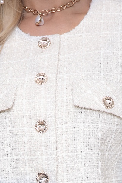Шикарный жакет в стиле шанель из качественного костюмного твида(ткань производство Турция) с центральной застежкой на пуговицы свободного силуэта.По переду декоративные клапаны.