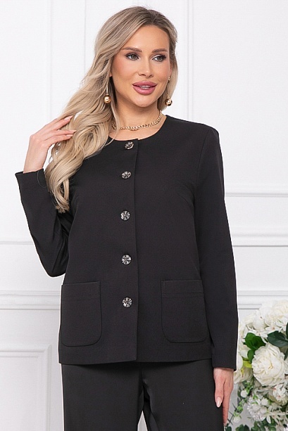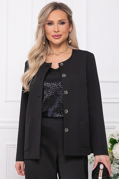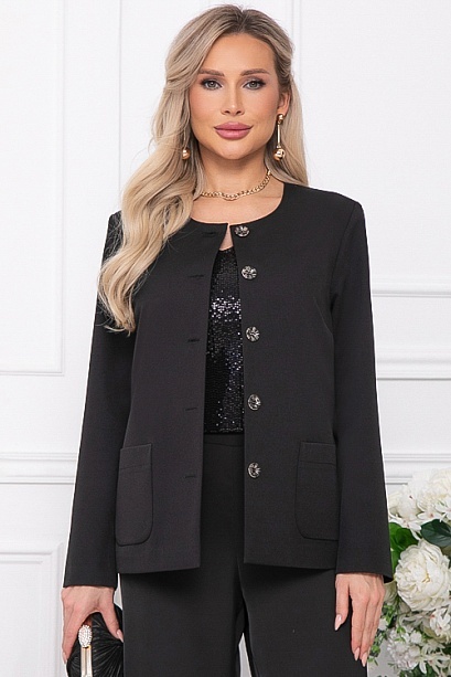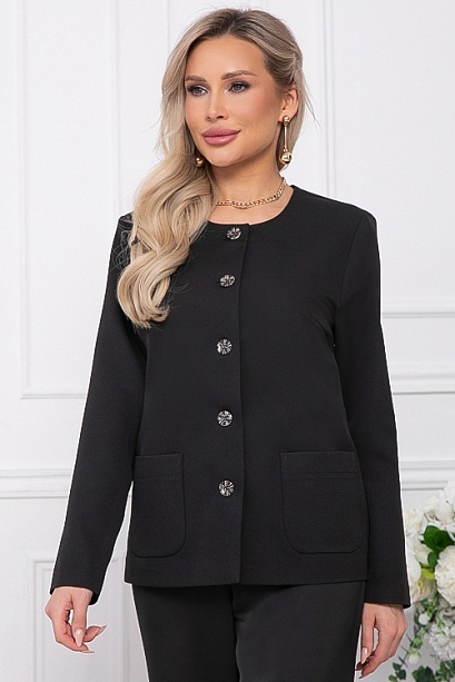 * Жакет из костюмной ткани прямого силуэта в стиле шанель.По переду функциональные накладные карманы и центральная застежка на нарядные пуговицы.