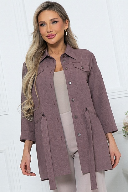 * Жакет из костюмной ткани(смесовая ткань со льном) свободного силуэта с центральной застежкой на пуговицы.Воротник отложной на стойке.По переду декоративные клапана.В боковых швах функциональные карманы.