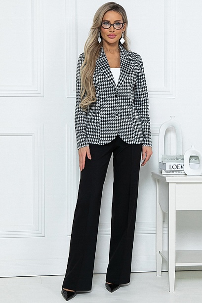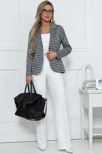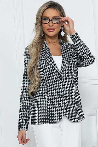* Жакет из трикотажного полотна полуприлегающего силуэта. Центральная застежка на две пуговицы. Воротник отложной с лацканами.
