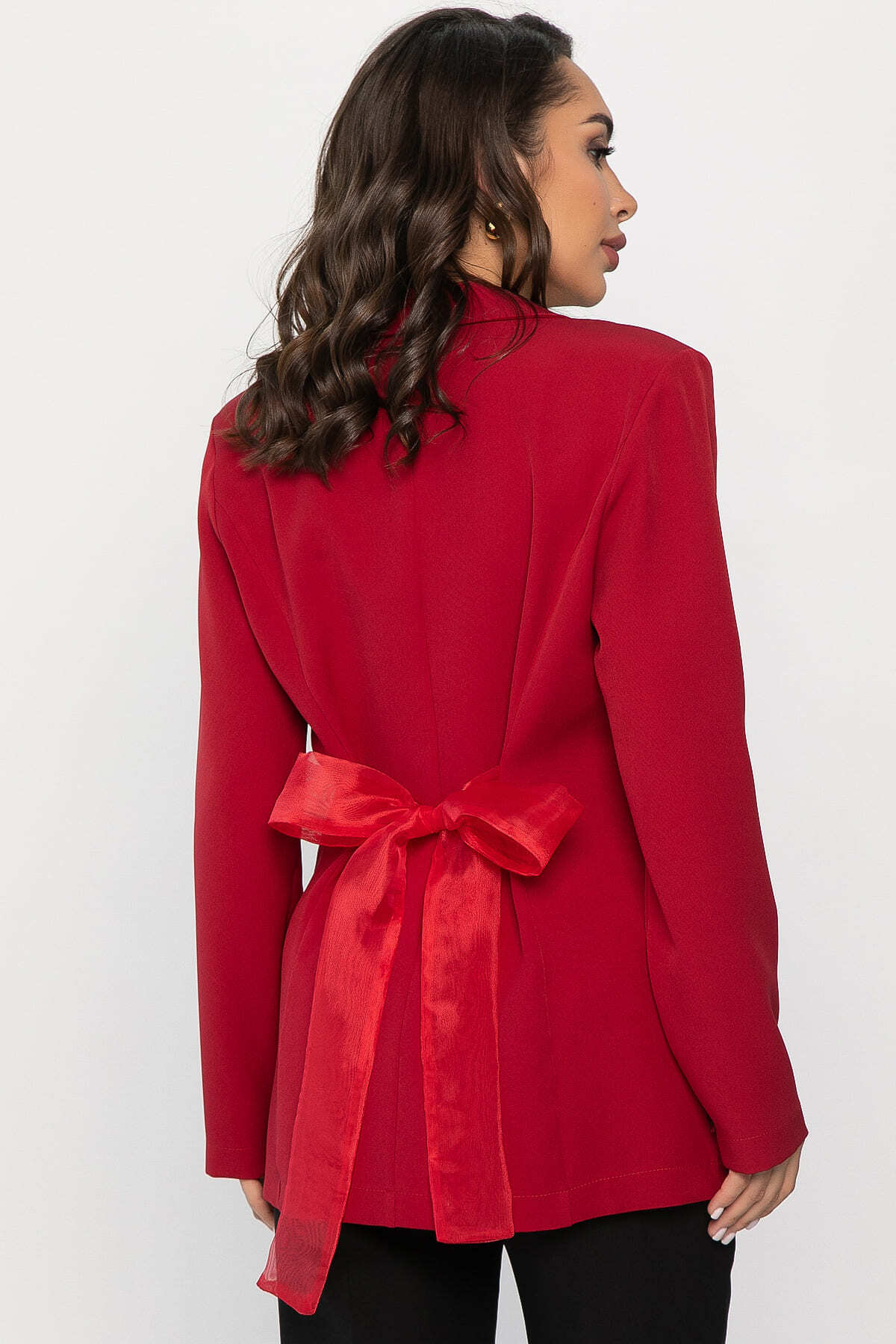 Классический жакет в красивом рубиновом цвете — это незаменимый элемент гардероба, который отлично подходит как для деловых встреч, так и для особых событий. Его отличительная черта — вшитый пояс из органзы, который можно носить по-разному: спереди или сзади, что позволяет менять стиль в зависимости от настроения. Прямой и строгий крой придаёт силуэту элегантность. Этот жакет обеспечит комфортное ощущение и уверенность, помогая подчеркнуть вашу индивидуальность.