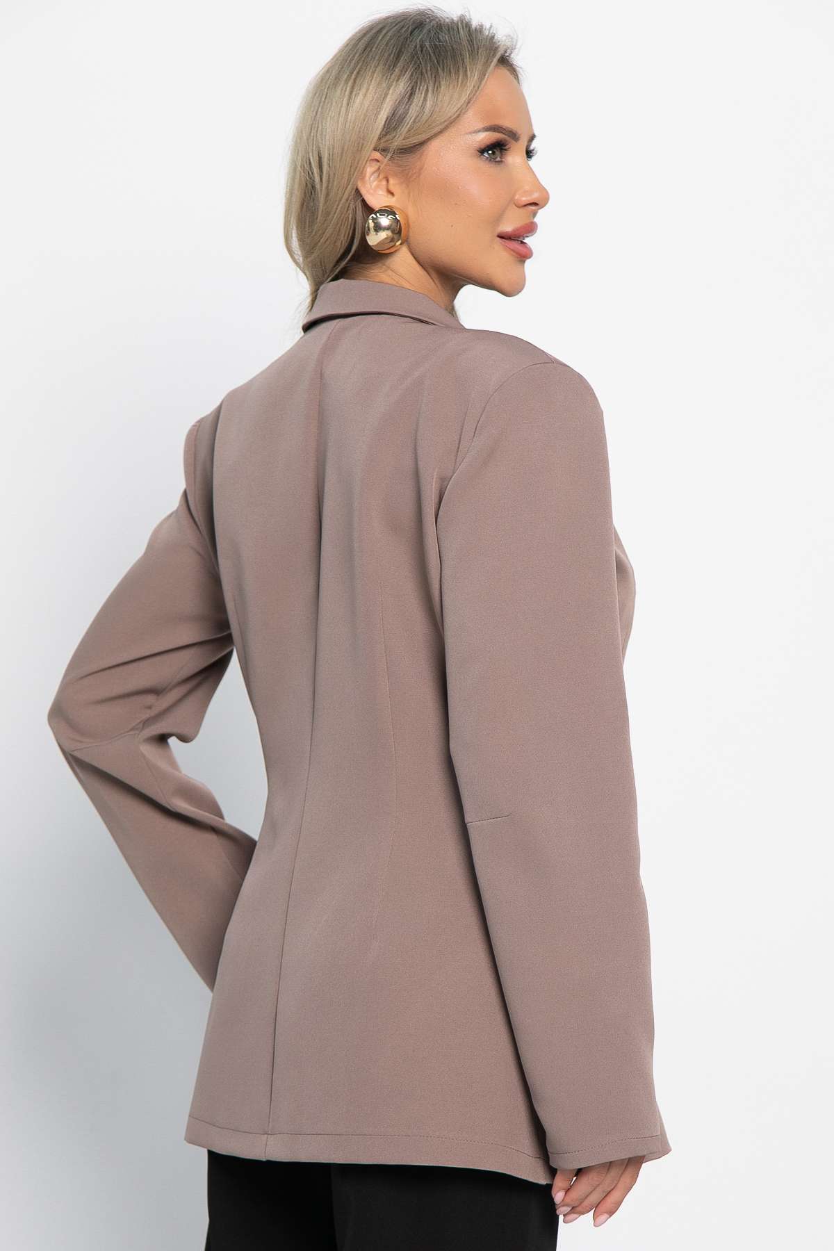 Женский классический жакет в оттенке «какао» — идеальный выбор для делового гардероба. Полуприталенный жакет асимметричного кроя с английским воротником, который при желании можно носить как стойку. Застегивается на одну пуговицу, обтянутую в тон ткани, а на передней части предусмотрена подкладка. Особое внимание привлекают прорезной карман, который добавляют не только практичности, но и эстетического совершенства, подчеркивая современный дизайн модели. Легко комбинируется с различными элементами одежды, что делает его идеальным выбором для создания стильного и профессионального образа. Обновите свой гардероб с этим замечательным жакетом.