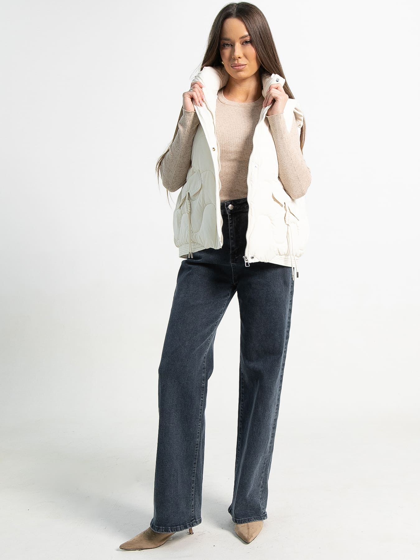 Женский стеганый жилет в оттенке крем-брюле, идеально подходящий для осени и весны, станет важной частью вашего гардероба. Он создан для максимального комфорта и теплоты, сочетая современный стиль и практичность. Воротник-стойка и вместительные передние карманы, украшенные шнуром из экокожи, добавляют жилету элегантности. Этот утепленный жилет прекрасно подходит для создания многослойных ансамблей, идеально сочетаясь с любимыми свитерами, толстовками или водолазками. Он обеспечивает тепло и свободу движений, оставаясь стильным элементом вашего образа. Благодаря продуманному дизайну и функциональным деталям, жилет подходит как для городских прогулок, так и для загородных поездок или повседневных задач. Создайте уникальный образ с этим модным и практичным жилетом!